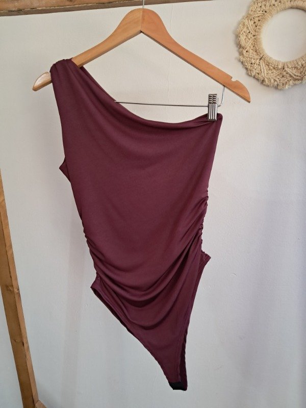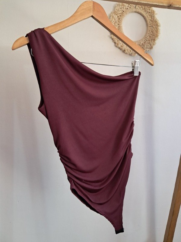 Body de lycra con hombro descubierto y arruche en hombre y costados.