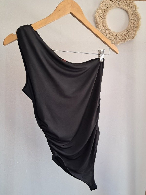 Body de lycra con hombro descubierto y arruche en hombre y costados.