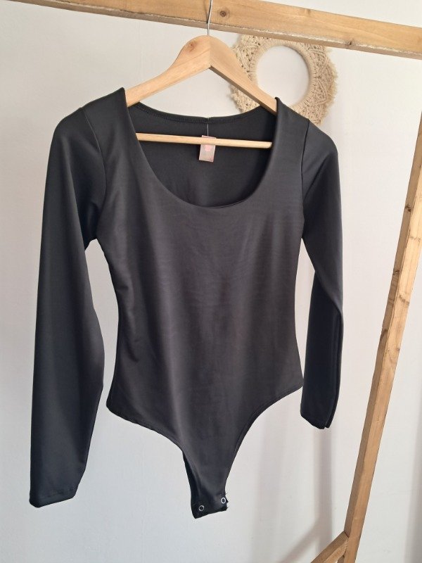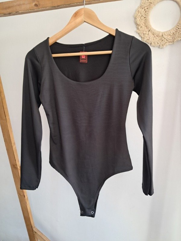 Body de lycra cuello en U con ganchos en la prendedura.