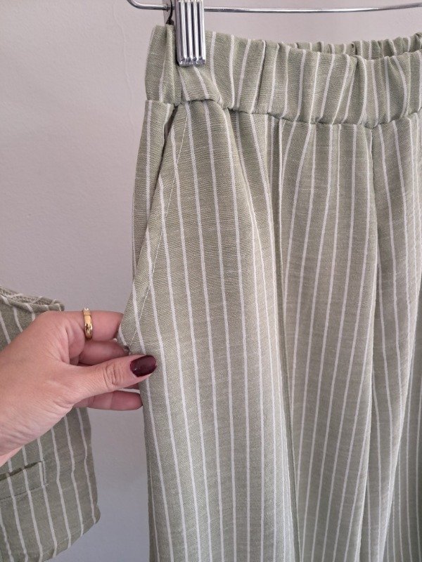 -Pantalón tiro alto con cintura elastizada y bolsillos.