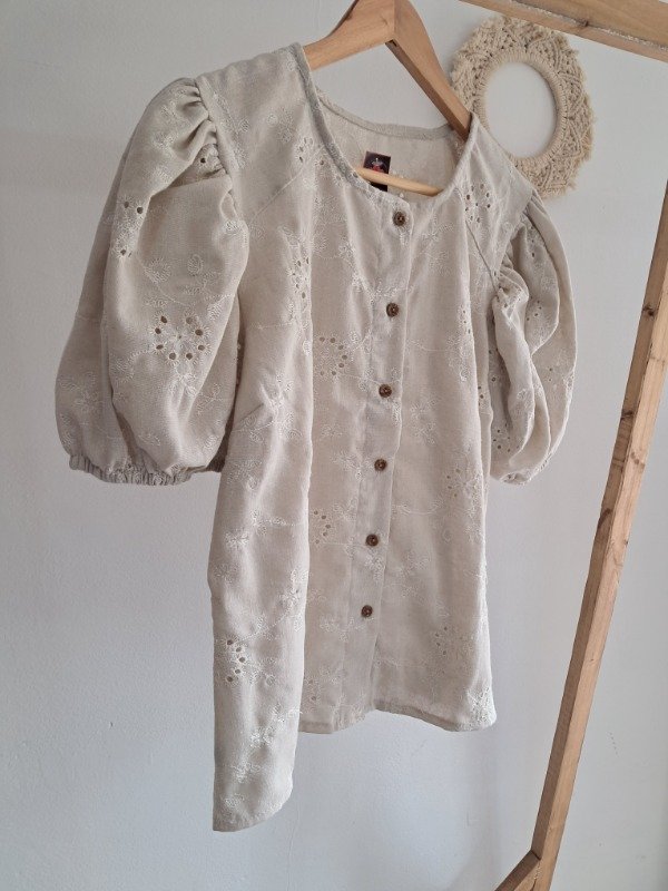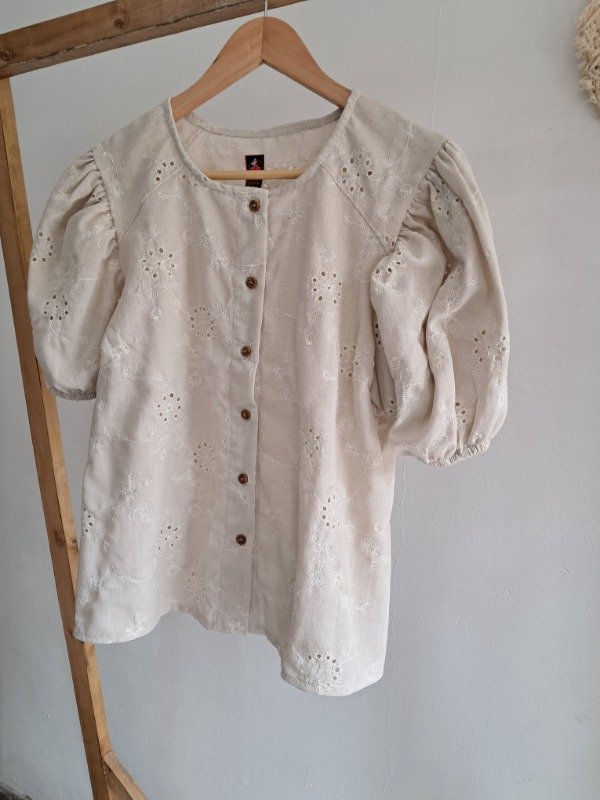 Una prenda super delicada donde se combina el calado del broderie con los botones brindando elegancia al vestir.