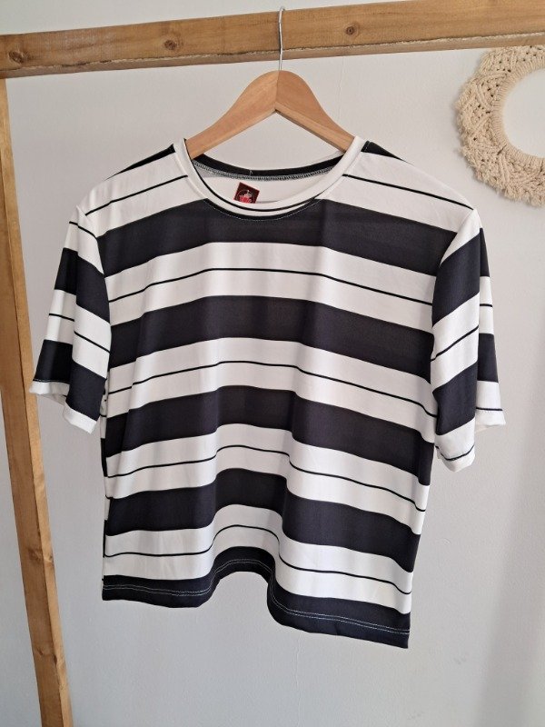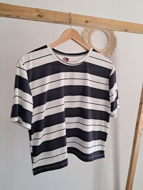 Remera rayada de modal gamuzado, corte a la cintura.