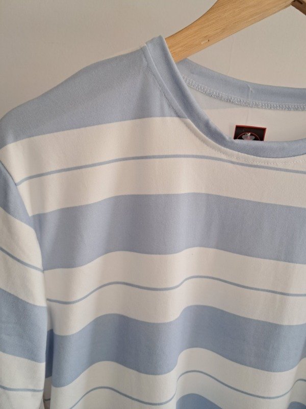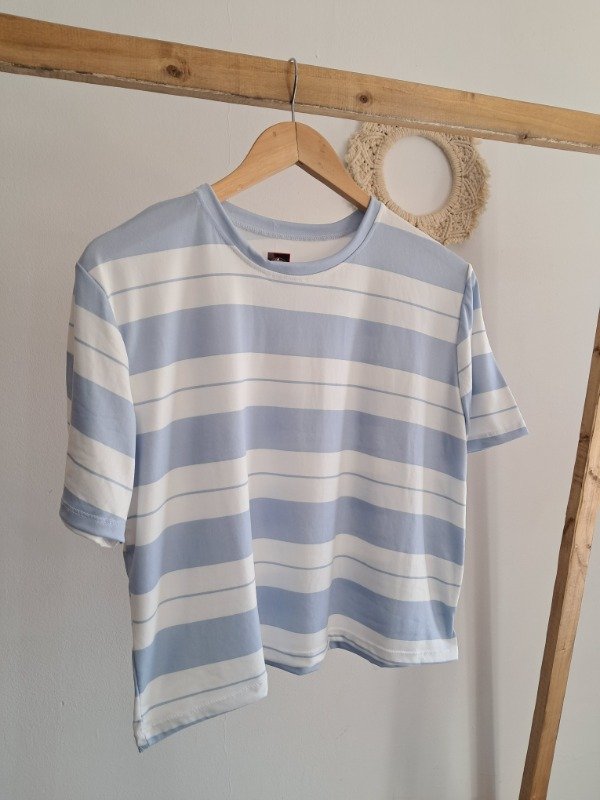 Remera rayada de modal gamuzado, corte a la cintura.