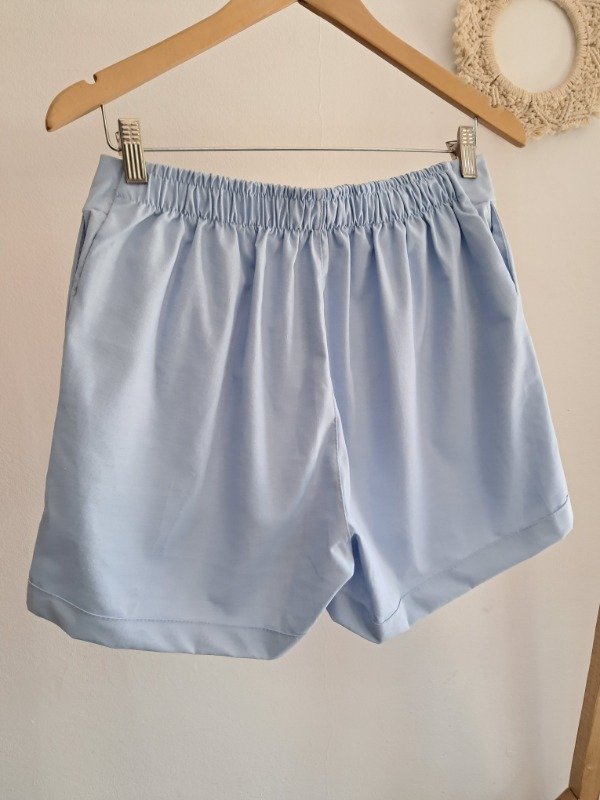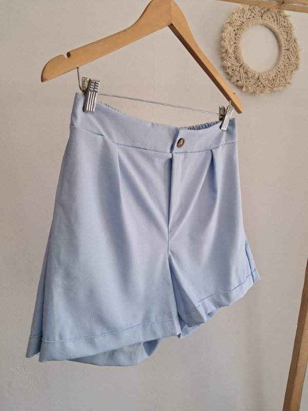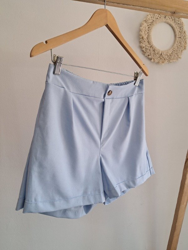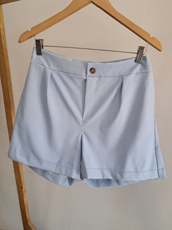 -Short con boton simil madera y cierre, corte de pinzas delanteras. Tiro alto, posee la mitad de la cintura fija y mitad elastizada asegurando tu comodidad, dobles en la terminación de la pierna.
