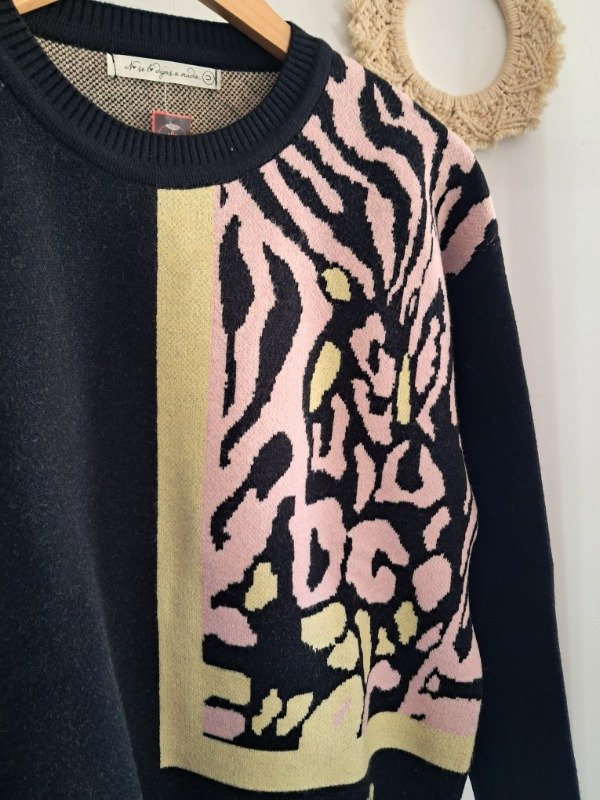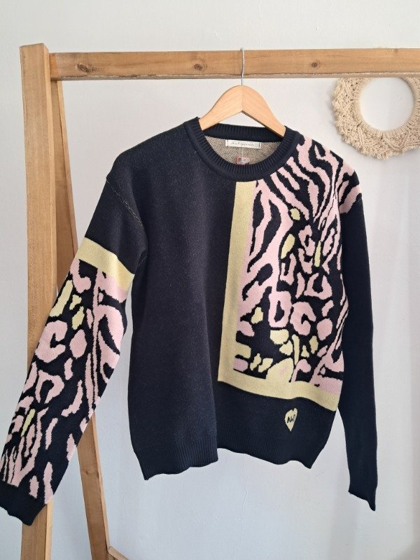 Sweater estampado animal print, una combinación que cautiva.