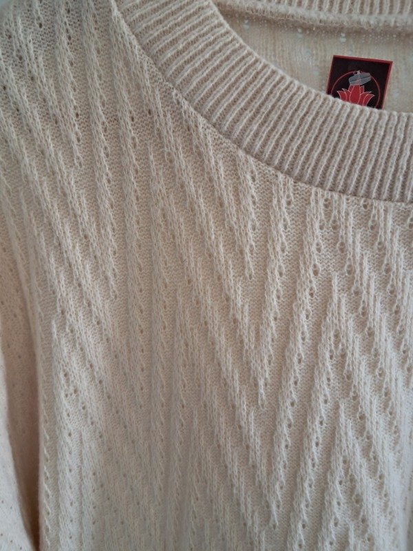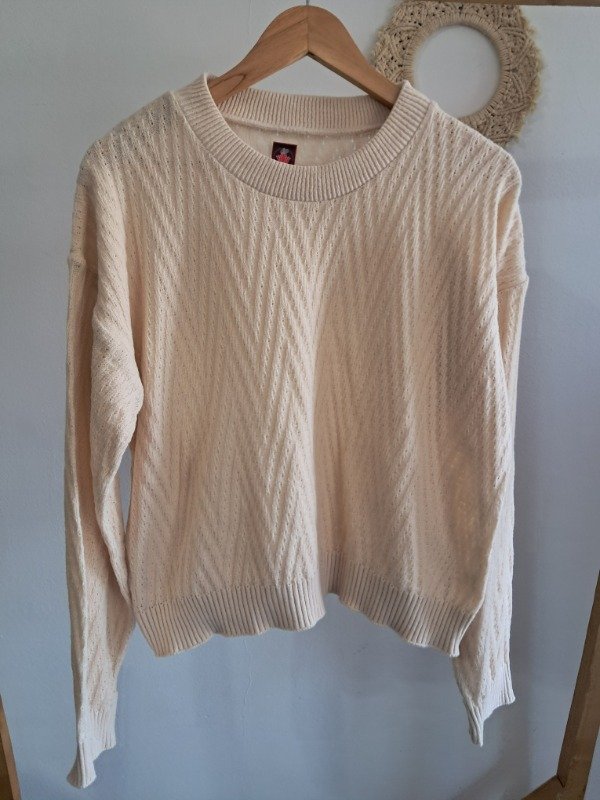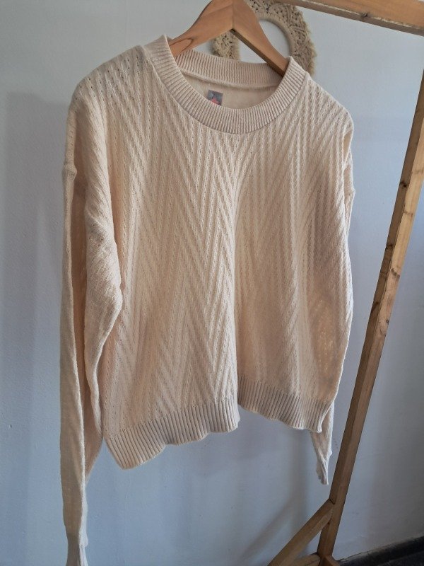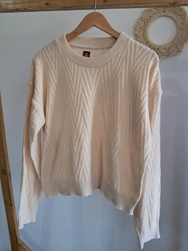 Sweater tejido abierto, liviano. Cuello redondo y tejido en zig zag.