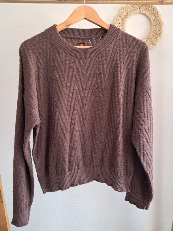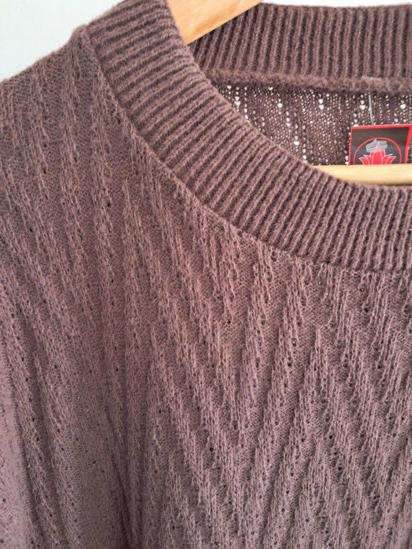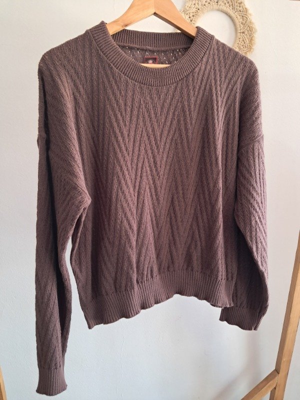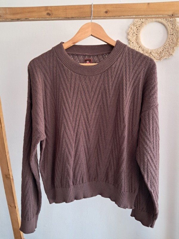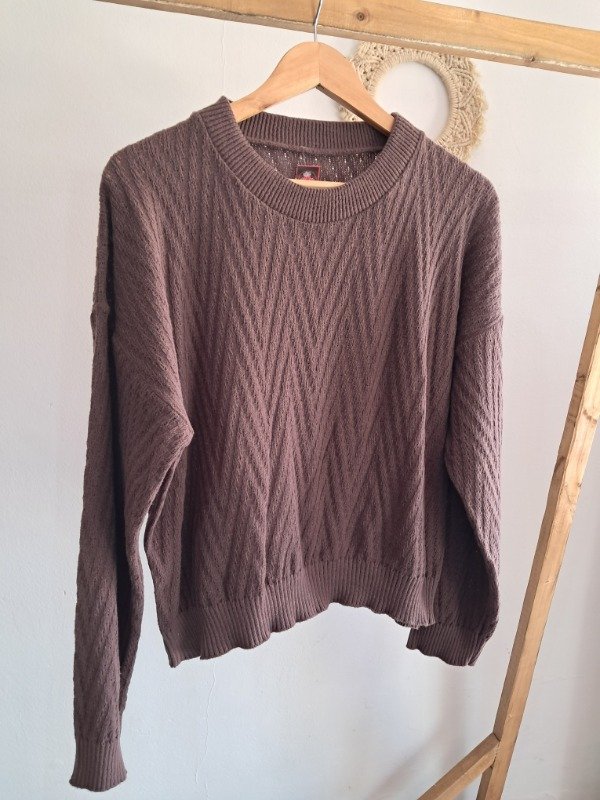 Sweater tejido abierto, liviano. Cuello redondo y tejido en zig zag.